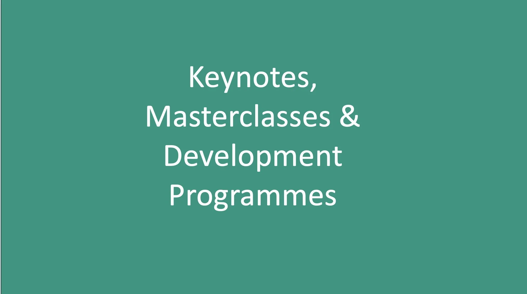 Keynotes, Masterclasses & Development Programmes